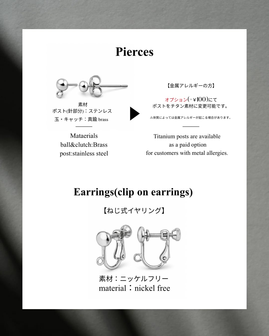 ⚫︎pierces or clip on earrings