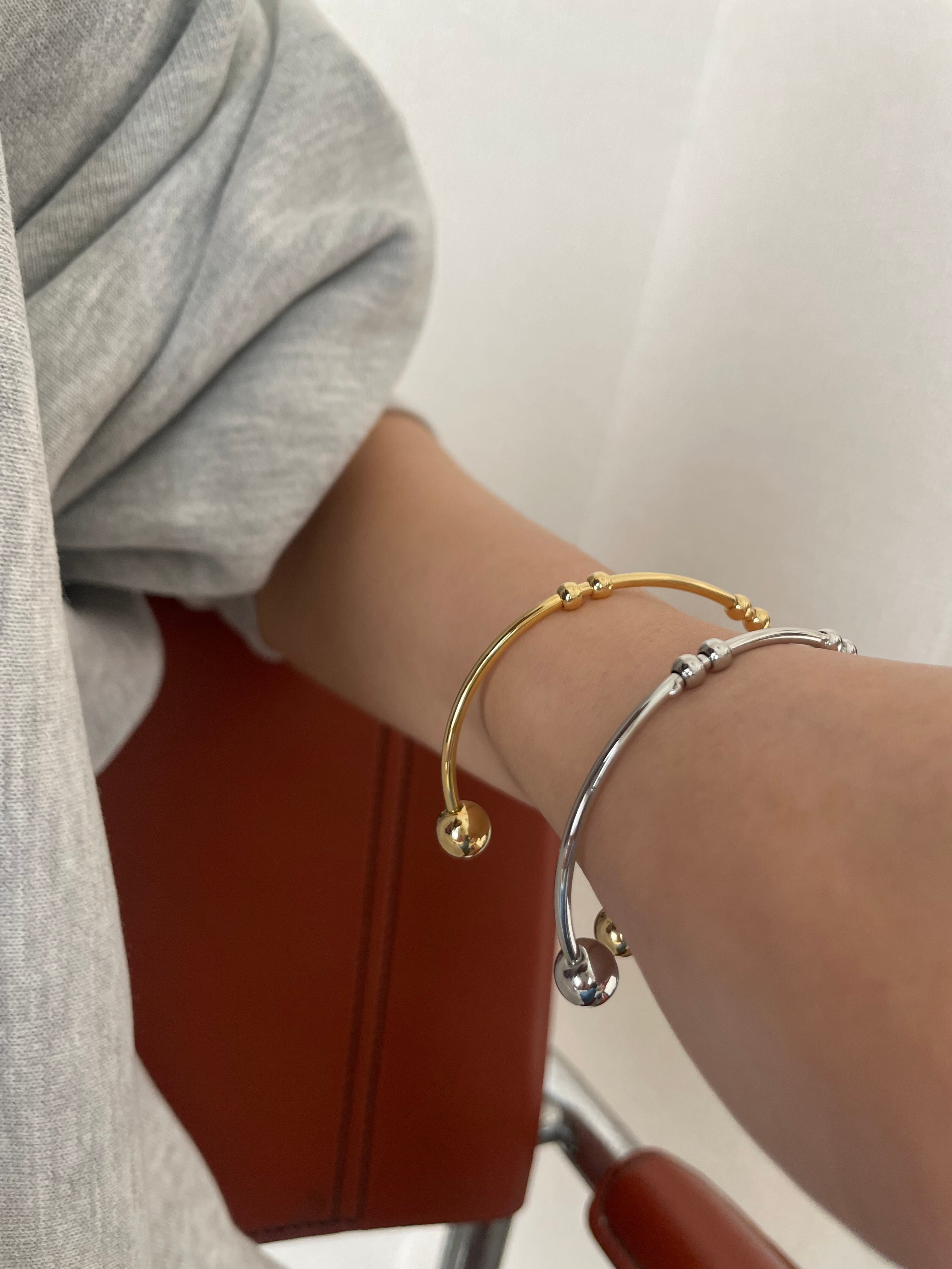 小さなボールモチーフをあしらったシンプルなバングル。